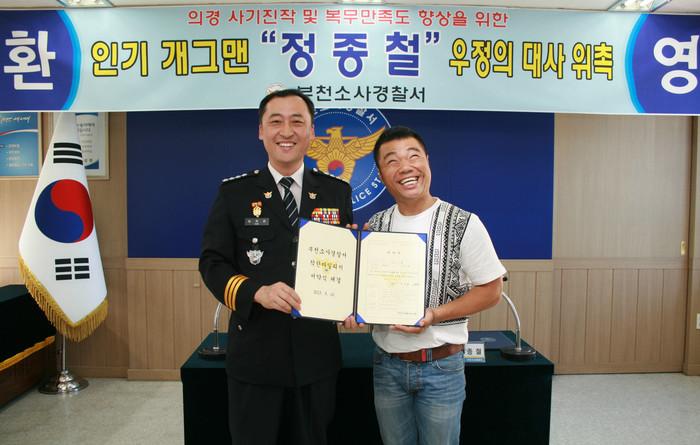 소사서의 우정의 대사 위촉 식을 마친 후 정종철씨는 전, 의경들과 담화를 나누는 시간을 가졌는데 정 씨는 대원들의 질문에 재치 있는 답변으로 화기애애한 분위기를 주도하며 자신의 개인기인 핸드폰진동소리, 비행기소리 등을 보여주며 웃음을 선사했다.