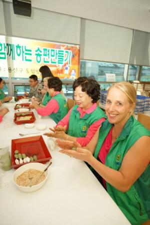 | ▲ 송편을 빚고있는 미군부대 가족들의 모습. | ||