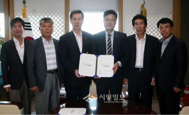| ▲ 인천경제청과 인천산림조합간 MOU 체결식에 참석한 내빈들이 행사를 마친 후 기념촬영을 하고 있다. | ||