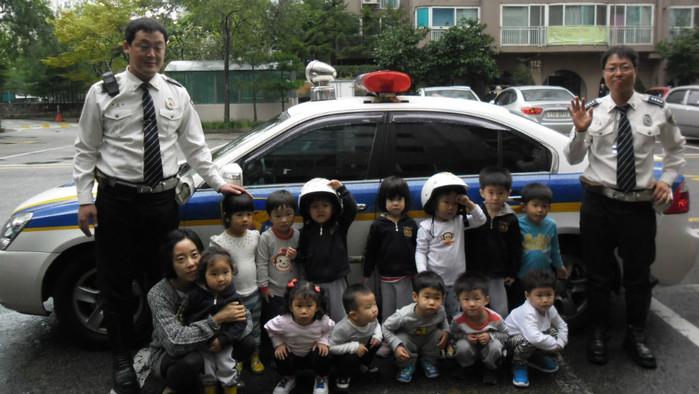 이날 교육은 아이들의 눈높이에 맞춘 안전교육으로 대형 횡단보도 매트를 이용해 엄마 손을 들고 안전하게 횡단보도 건너기와 통학버스 안전하게 내리고 타기, 안전벨트의 올바른 착용법 등을 배운 뒤 경찰차 시승 행사를 가졌다.