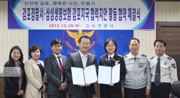 이날 협약으로 김포서는 현재 추진하고 있는 여성안심귀가길 등 관내 치안상황을 삼성생명보험과 공유하고 여성 1인 근무하는 보험설계자를 위해 범죄예방교육을 실시할 예정이다.