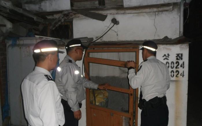 | ▲ 부평경찰서 철마지구대 직원들이 폐가에 대한 점검을 하고 있다. | ||