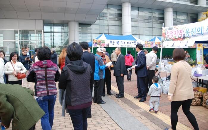 | ▲ 남부서 직원들이 농수특산물 직거래장터에서 국민공감기획수사 홍보활동을 펼치고 있다. | ||