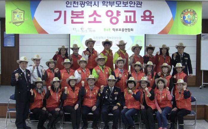 | ▲ 계양구 학부모보안관 소양교육 참가자들이 기념촬영을 하고 있다. | ||