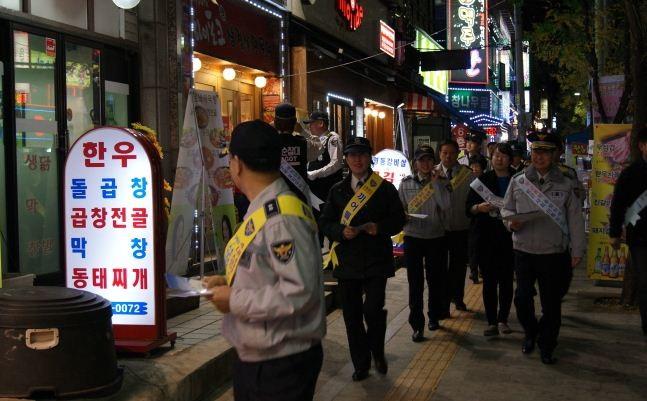 | ▲ 다 같이 동네한바퀴 합동순찰 참가자들이 거리홍보를 벌이고 있다. | ||