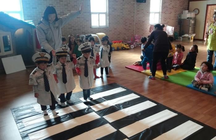 교통안전 체험교실에서는 어린이 교통사고가 잦은 횡단보도 및 어린이통학차량 사고 예방을 위한 실습형 체험학습 및 경찰제복 착용, 싸이카 탑승 등을 통해 어린이들의 교통안전의식을 함양했다.