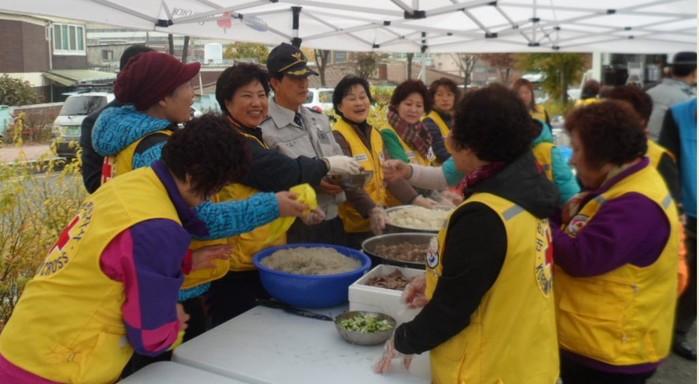 이날 행사는 대한적십자사가 동구지역 어르신 400여명에게 점심을 대접하는 행사로 지구대장 등 경찰관 5명이 참석, 배식과 식판 나르기, 안내하기 등 봉사활동을 벌였다.