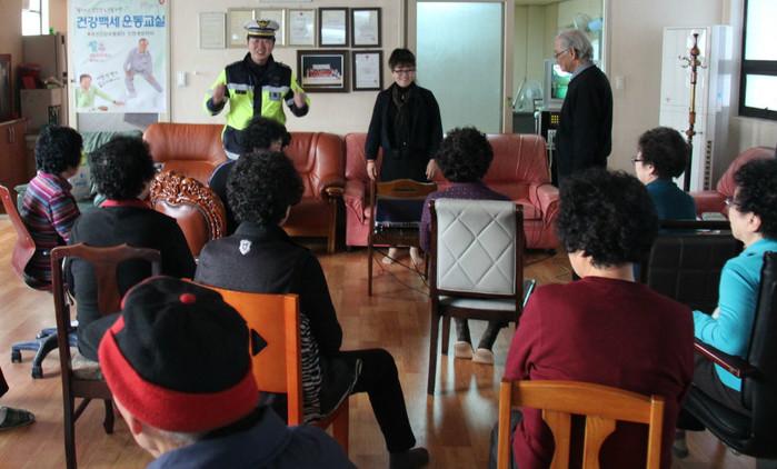 이날 교육은 노인들에 대한 소집교육이 어려운 점을 고려해 방문형 맞춤 교육으로 진행됐으며 노인들에게 무단횡단의 위험성과 보행자 준수사항을 설명하고 시인성 확보를 위한 야광조끼, 모자 등 홍보물품을 배부했다.