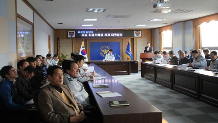 | ▲ 안정균 서장이 주요 지명수배자 검거 대책회의를 주제하고 있다. | ||