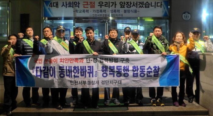 | ▲ 다 같이 동네한바퀴 합동순찰 참가자들이 기념촬영을 하고 있다. | ||