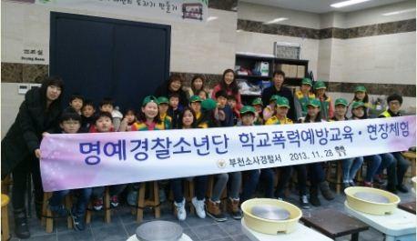 이날 행사는 소사서 학교전담경찰관의 학교폭력예방 교육과 부천옹기박물관 도자기체험으로 이뤄졌으며 도자기체험에서는 ‘폭력 없는 학교’에 대한 주제로 각자의 바람을 그려보는 기회를 마련, 명예경찰소년단의 긍지와 자부심을 키워주는 시간이 됐다.