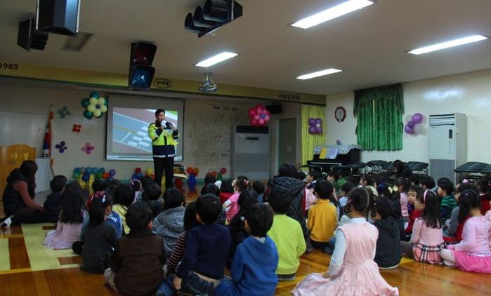 이날 교육은 유치원생들을 대상으로 어린이 교통사고 예방을 위한 안전교육 동영상(만화)을 상영하고 퀴즈를 통해 횡단보도 안전하게 건너기 요령을 교육하는 등 어린이 눈높이 맞춤형 교육으로 진행됐다.