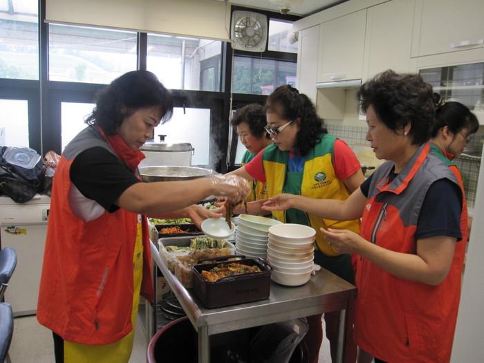 | ▲ 통통희망나래단이 저소득주민 대상의 '희망 밥상 나누기' 행사를 위해 반찬을 준비하는 모습. | ||