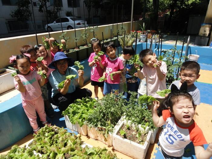 환경사랑 교육과 별개로 실시하는 생태 텃밭 교육은 옥상 및 상자 텃밭을 활용한 텃밭 가꾸기와 연계해 아이들이 친환경 작물을 직접 재배하는 생태 체험을 통해 자연의 소중함을 깨닫게 한다.