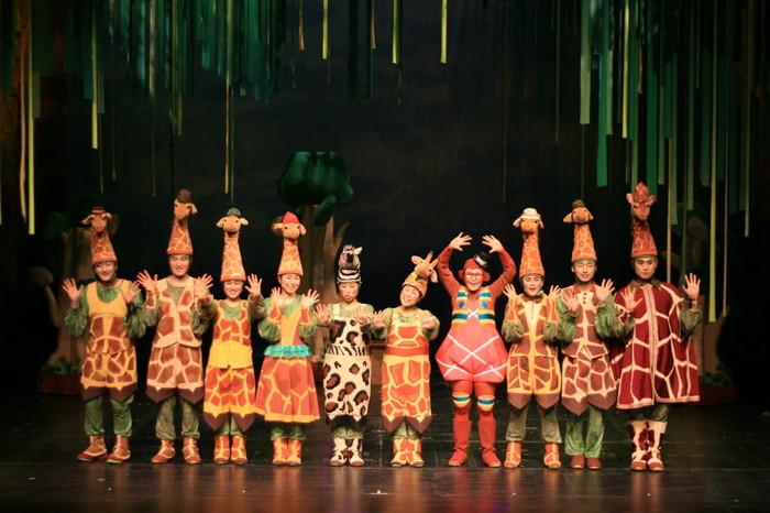 | ▲ 생김새가 다르게 태어난 기린 ‘지피’가 친구들과의 갈등을 해소하고 함께 역경을 해결해나가는 과정을 담은 베스트셀러 고정욱 작가의 동화를 원작으로 한 뮤지컬 <목 짧은 기린 지피>의 공연모습. | ||