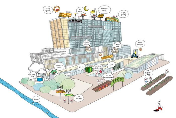 그 노력의 일환으로 금천구는 청사를 에코센터로 활용 중이다. 구 청사는 많은 지역주민이 각종 행정서비스와 민원을 처리하기 위해 방문하는 곳이다. 게다가 구청에서 사용하는 건물이기 때문에 다른 민간 건물에 비해 상대적으로 설비를 설치하고 운영하기 쉽다는 장점이 있다.