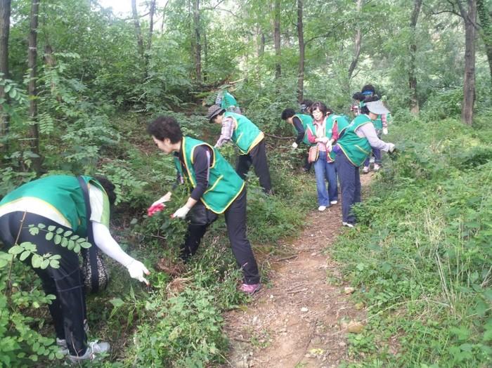 | ▲ 지난해 아차산에서 실시한 '아차산 생태보전 캠페인'에 참가한 지역주민들이 외래유해 식물을 제거하는 모습 | ||