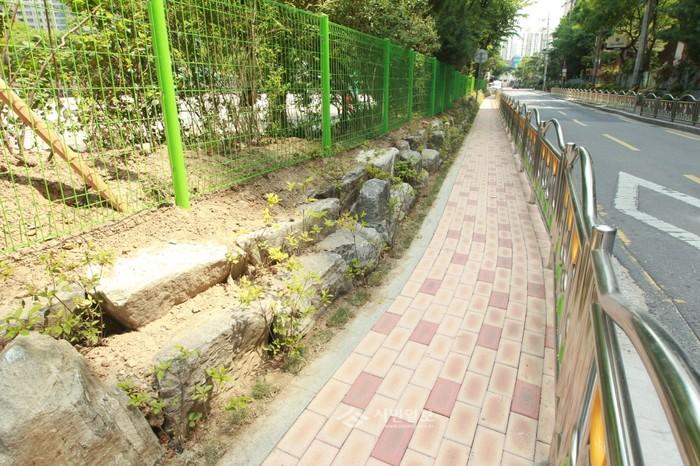 구는 이 문제를 해결하기 위해 교육청, 학교와 지속적인 협의를 실시해 도로에 접한 학교 부지의 일부를 보도 조성에 사용하기로 합의하고 지난 4월 공사를 시작해 지난 1일 완공했다.