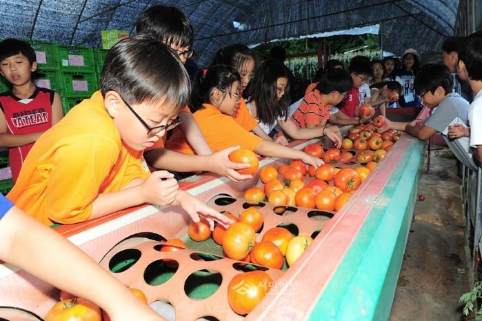 | ▲ 2012년 진행된 '제5회 여름방학 홈스테이'에 참여해 자매도시 횡성군을 방문한 금천구 어린이들이 농촌체험을 하는 모습. (사진제공=금천구청) | ||