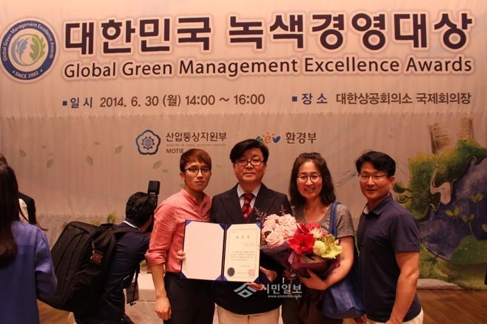 '대한민국 녹색경영대상'은 환경보전 활동과 기업경쟁력강화 활동을 동시에 추구하기 위해 제정됐으며 녹색경영 실천에 앞장선 기업과 유공자를 발굴하는 환경경영 분야의 정부 포상이다.