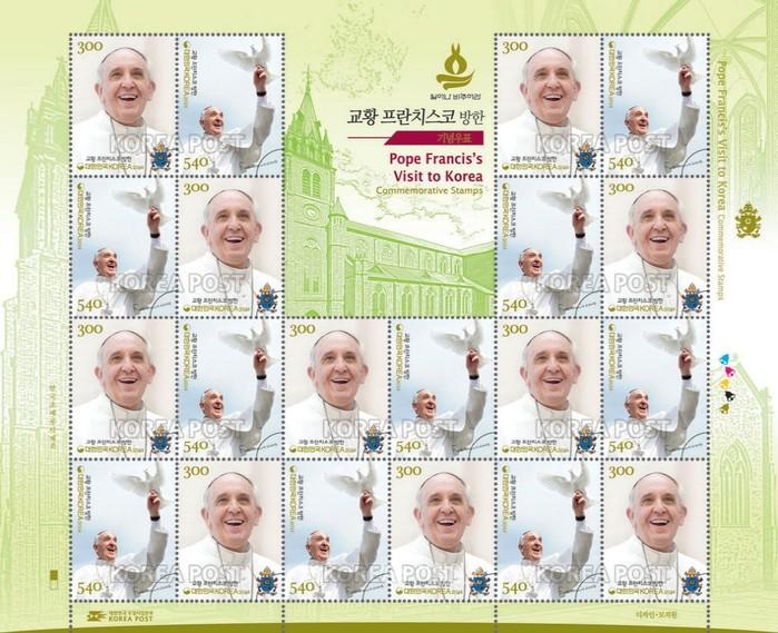 우정청에 따르면 이번 기념우표는 교황 프란치스코와 비둘기를 소재로 한반도에 화해와 평화가 깃들기를 소망하는 교황의 마음을 담아 디자인했다.