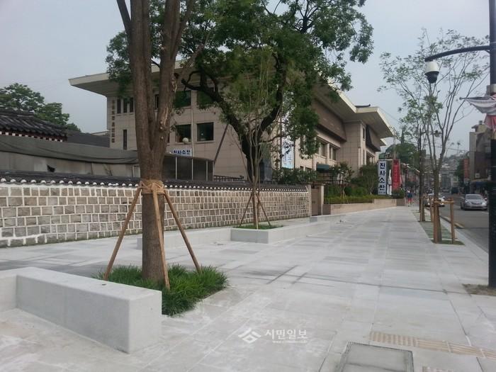 공사는 명륜동 2가 131-1과 2, 명륜동 3가 53-8 일대에 ▲돌을 이용해 바닥을 대청마루 무늬로 꾸미는 전통 투수 돌 포장 ▲배롱나무, 모란, 산철쭉 등 수목 식재 ▲기존 게시판 외벽의 전통담장 조성으로 진행돼, 자연과 전통문화가 어우러진 휴식공간으로 다시 태어났다.