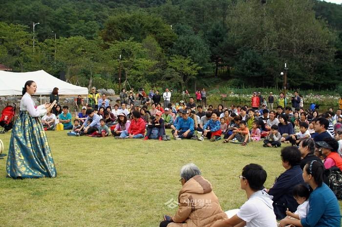 | ▲ 지난해 열린 '더불어 숲 축제'에 참여한 관객들이 인문학 강연을 듣고있는 모습. (사진제공=구로구청) | ||