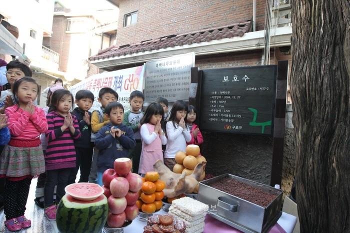 | ▲ 지난해 진행된 가리봉동 측백나무제에 참여한 주민들의 모습. (사진제공=구로구청) | ||