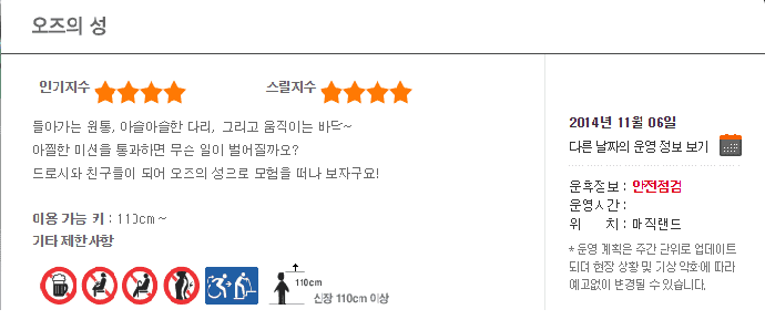 한편, 사고가 난 오즈의 성은 '돌아가는 원통', '아슬아슬한 다리', '움직이는 바닥' 등 다양한 장애물을 통과하는 놀이기구로 신장 110cm 이상의 아이라면 혼자서도 들어갈 수 있다.