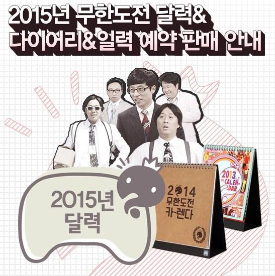MBC '무한도전' 제작진측은 지난 21일 공식 홈페이지를 통해 "2015년 '무한도전' 달력 및 다이어리를 오는 11월27일 정오부터 MBC Tshop과 G마켓을 통해 예약판마에 들어간다"고 밝혔다.