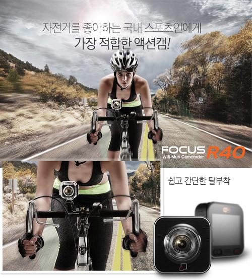 ‘FOCUS R40’은 산악이나 바다 등 어떠한 환경에서도 촬영이 가능하여 액션캠으로 벌써부터 입소문을 타고 있다. ‘FOCUS R40’은 견고하게 제작된 아크릴 재질의 방수 케이스가 기본 제공되며, 다양한 부가 액세서리로 용도를 확장시킬 수 있다. 스카이다이빙, 클라이밍, 바이크, 모터사이클, MTB, 스노우보드, 스키 등 익스트림 환경 및 서핑보드, 웨이크 보드, 수중촬영까지 가능하도록 설계되어 액션캠으로 사용할 수 있다.