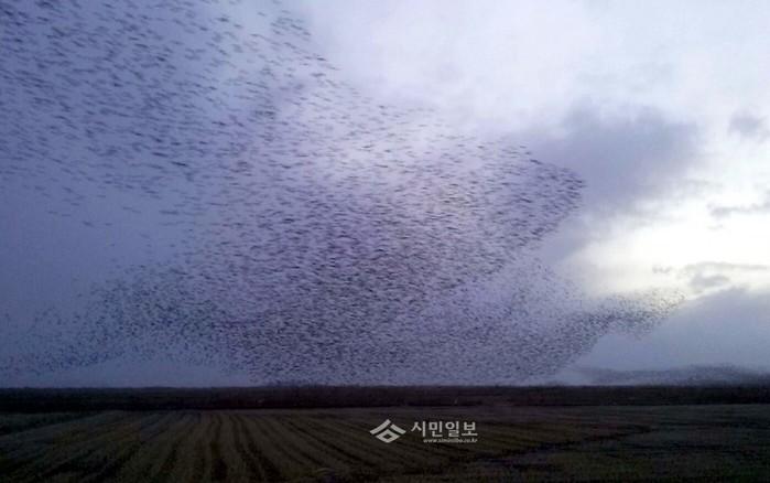 전남 해남 고천암호와 영암호에 지난 11월 초부터 가창오리와 같은 철새들이 모여들더니 3일 기준 30만마리의 철새가 관찰되고 있는 상태다.