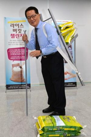 '라이스버킷 챌린지'는 '아이스버킷 챌린지'의 아이디어를 따왔다. 쌀 30㎏을 들어 올리면 도전에 성공하는 것이다. 만약 들어 올리지 못하면 쪽방촌에 쌀 30㎏을 기부하는 형식이다.