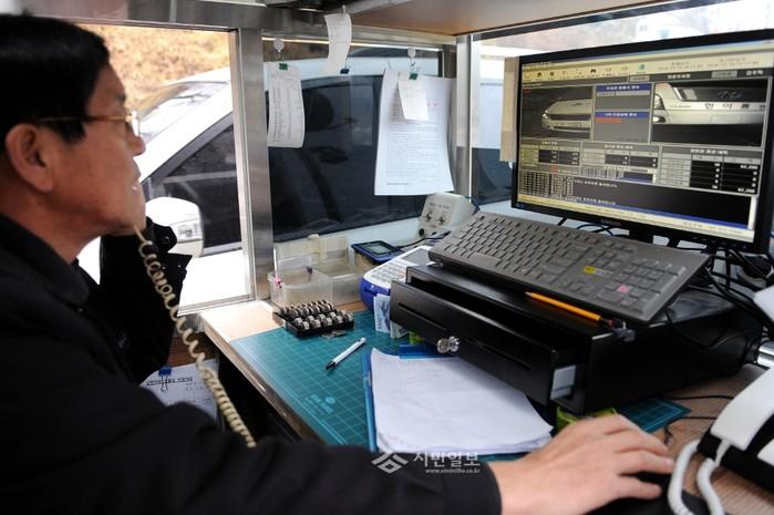 | ▲ 새로운 주차관제 시스템인 LPR시스템을 이용해 주차관리인이 차량 정산을 하고 있다.(사진제공=송파구청) | ||