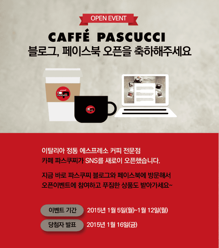 당첨자는 파스쿠찌 페이스북과 블로그에서 16일 발표할 예정이다.
