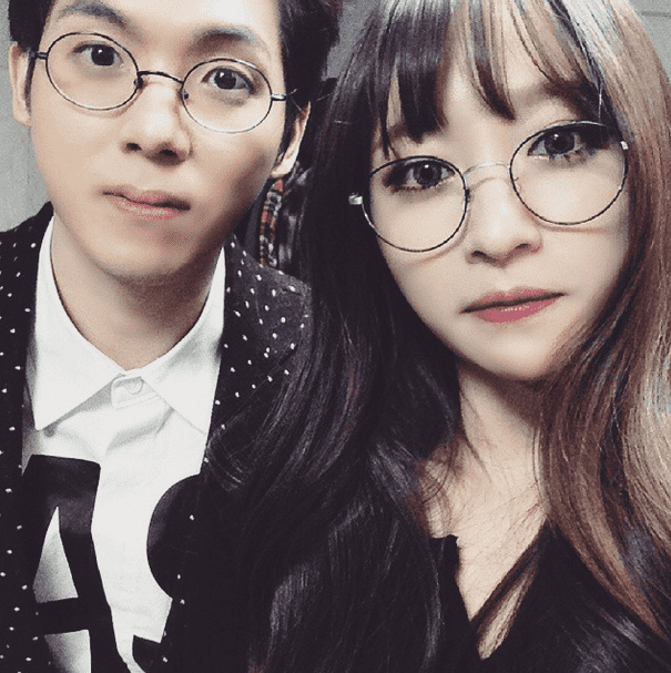 공개된 사진 속 EXID 하니는 매드클라운과 똑같은 동그란 테 안경을 쓴 모습이다.