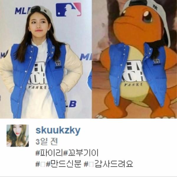 이 사진은 수지가 직접 자신의 인스타그램에 "파이리 꼬부기이 만드신 분 감사드려요"라는 글과 함께 올리며 다시금 화제가 됐다.