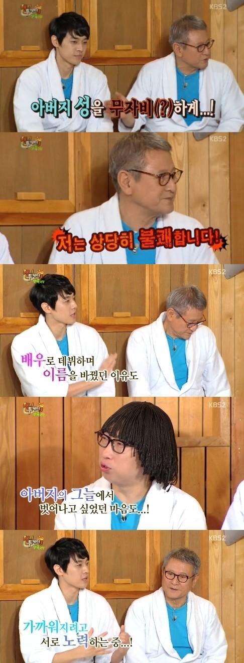 | ▲ <해피투게더3> '가족특집'에 함께 출연한 박근형, 윤상훈 부자의 모습(사진제공=KBS 화면 갈무리) | ||