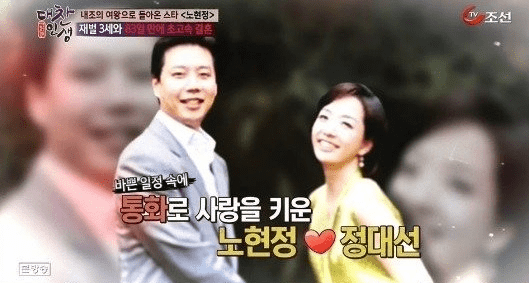 이는 20일 방송된 TV조선 '대찬인생'에서 2007년 노현정 전 아나와 정대선씨와의 이혼설이 불거진 것과 관련해 노현정의 시모 이행자 여사의 전화 인터뷰 내용 일부가 공개된면서다. 당시 불거진 이혼설은 사실무근으로 밝혀진 바 있다.