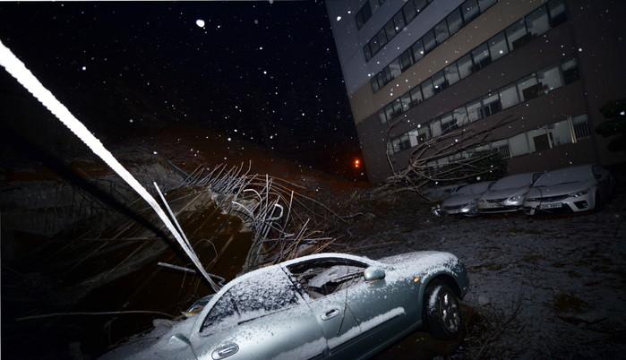 | ▲ 5일 오전 3시50분께 광주 남구 봉선동 한 아파트 옹벽이 붕괴돼 차량 수십대가 깔렸다.(사진제공=뉴시스) | ||