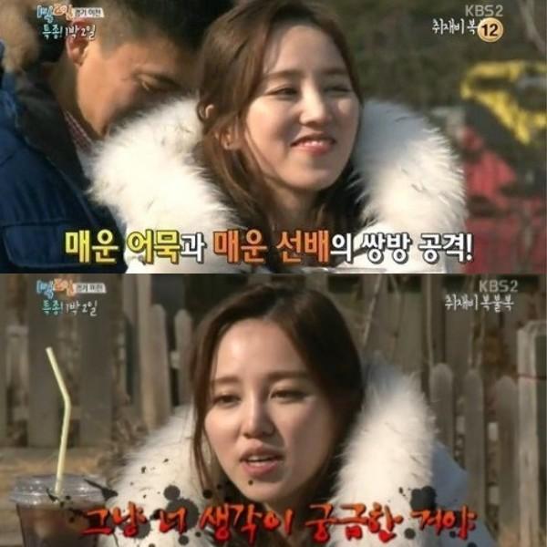 이날 김나나 기자와 김빛이라 기자는 취재비를 두고 매운 어묵 먹기를 펼친 가운데 김나나 기자는 어묵을 먹고 연신 우유를 들이킨 반면 김빛이라 기자는 별다른 반응을 보이지 않았다. 이에 김나나 기자는 김빛이라 기자에게 “엄청 독하다. 몇 기니? 차이가 너무 많이 나서”라며 군기를 잡았고 김빛이라 기자는 “38기입니다. 선배”라며 긴장한 모습을 보였다.