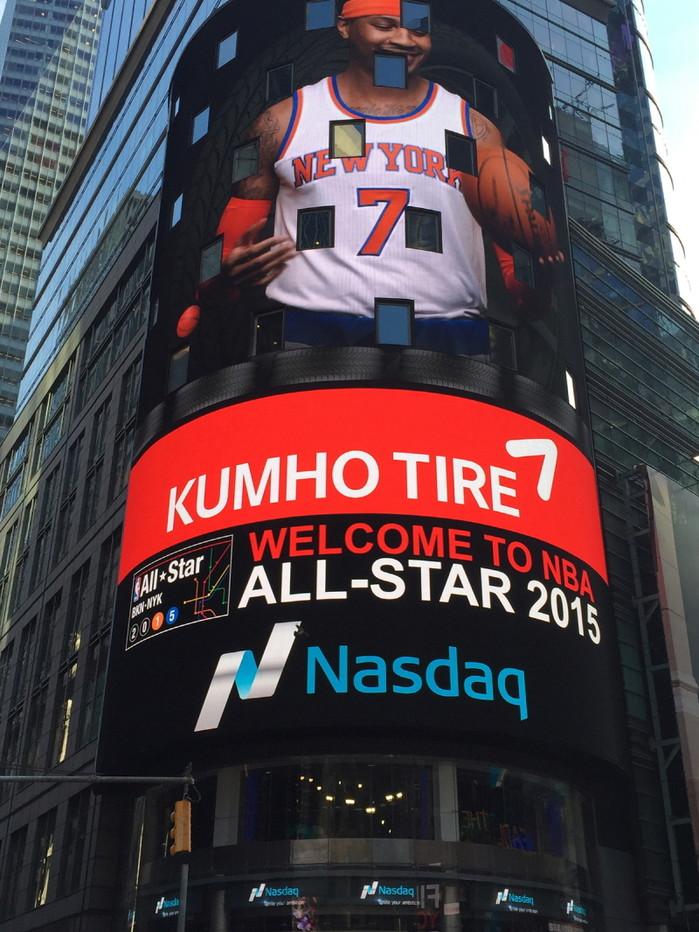 이번 NBA 올스타 2015 에서 금호타이어는 뉴욕 닉스 소속 카멜로 앤서니 선수를 홍보대사로 선정해 각종 광고 및 소셜미디어(이하 SNS)를 통해 대대적으로 기업 브랜드 이미지 광고를 실시하고 있다.