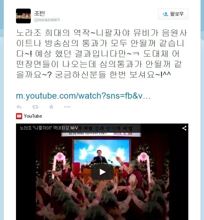 | ▲ 노라조 조빈 뮤비 언급 (사진=조빈 트위터 캡쳐) | ||