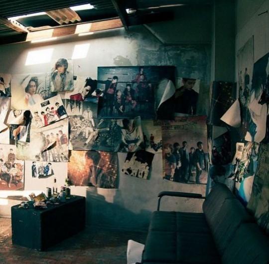 공개된 사진에는 앞서 공개된 컴백 트레일러 속 낡고 허름한 공간 안에 그동안 샤이니의 컨셉과 활동이 담긴 포스터들이 사방에 붙어있다.