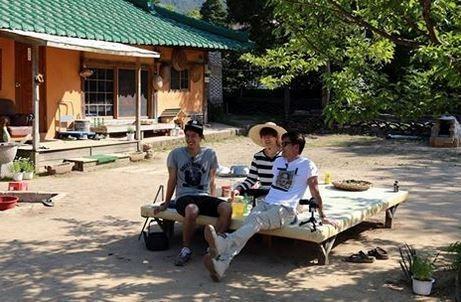 공개된 사진 속에는 마당 평상에 앉아서 환하게 웃고 있는 이서진, 옥택연, 지성의 모습이 담겨있다.