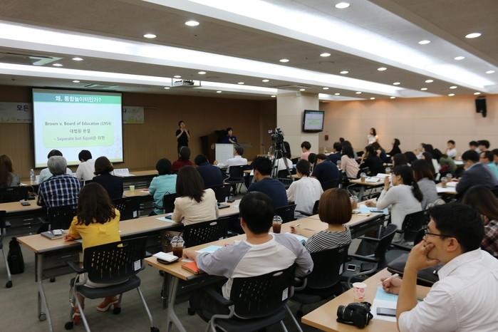 | ▲ 대웅제약이 4일 여의도 이룸센터 누리홀에서 아름다운재단 및 장애물없는생활환경시민연대와 함께 ‘무장애통합놀이터 세미나’를 진행하고 있다. | ||