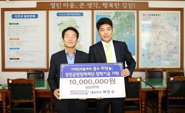 또한 지난 22일에는 강진군 출신 사업가인 백민수 대표가 장학금 1천만 원을 기탁했다.