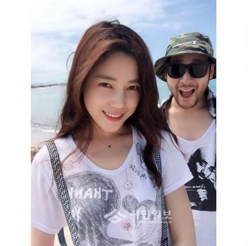 사진 속 둘은 바다를 배경으로 다정한 모습을 하고 있다.
