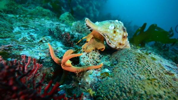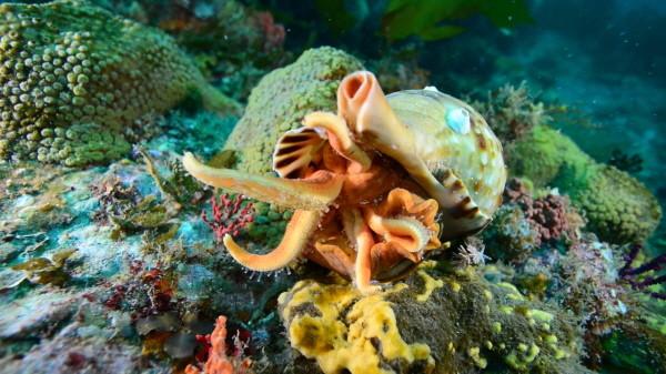 17일 국립공원관리공단은 한려해상국립공원 홍도에서 멸종위기종 야생생물 Ⅰ급인 나팔고둥이 불가사리를 잡아먹는 영상을 국내 최초로 촬영하는 데 성공했다고 밝혔다.