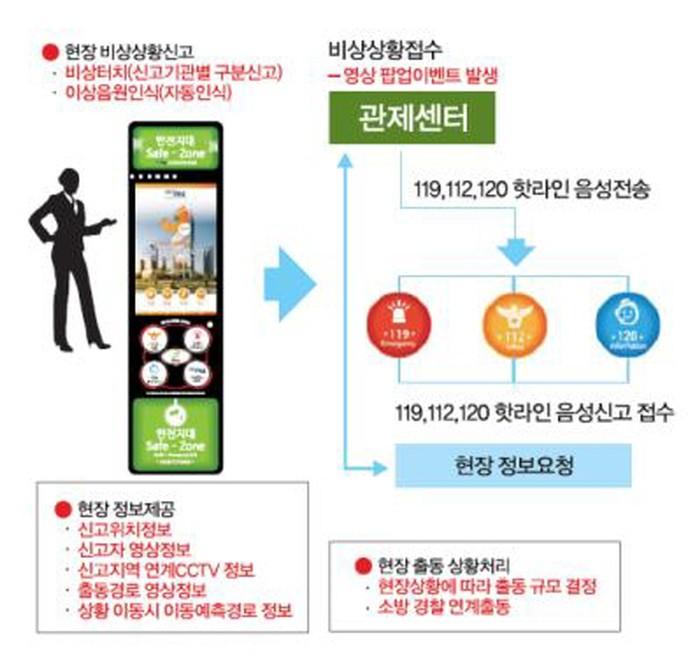 이 시스템은 장애인·비장애인 등이 신고기관별로 구분된 스크린 또는 스위치를 누르거나 이상음원이 감지될 때 즉시 해당 경찰서·소방서 등의 핫라인(음성·영상)으로 연결되고 관제센터는 다중비상벨과 짝을 이룬 폐쇄회로(CC)TV 영상정보를 통해 신고상황을 분석하고, 상황을 처리·지원할 수 있다.